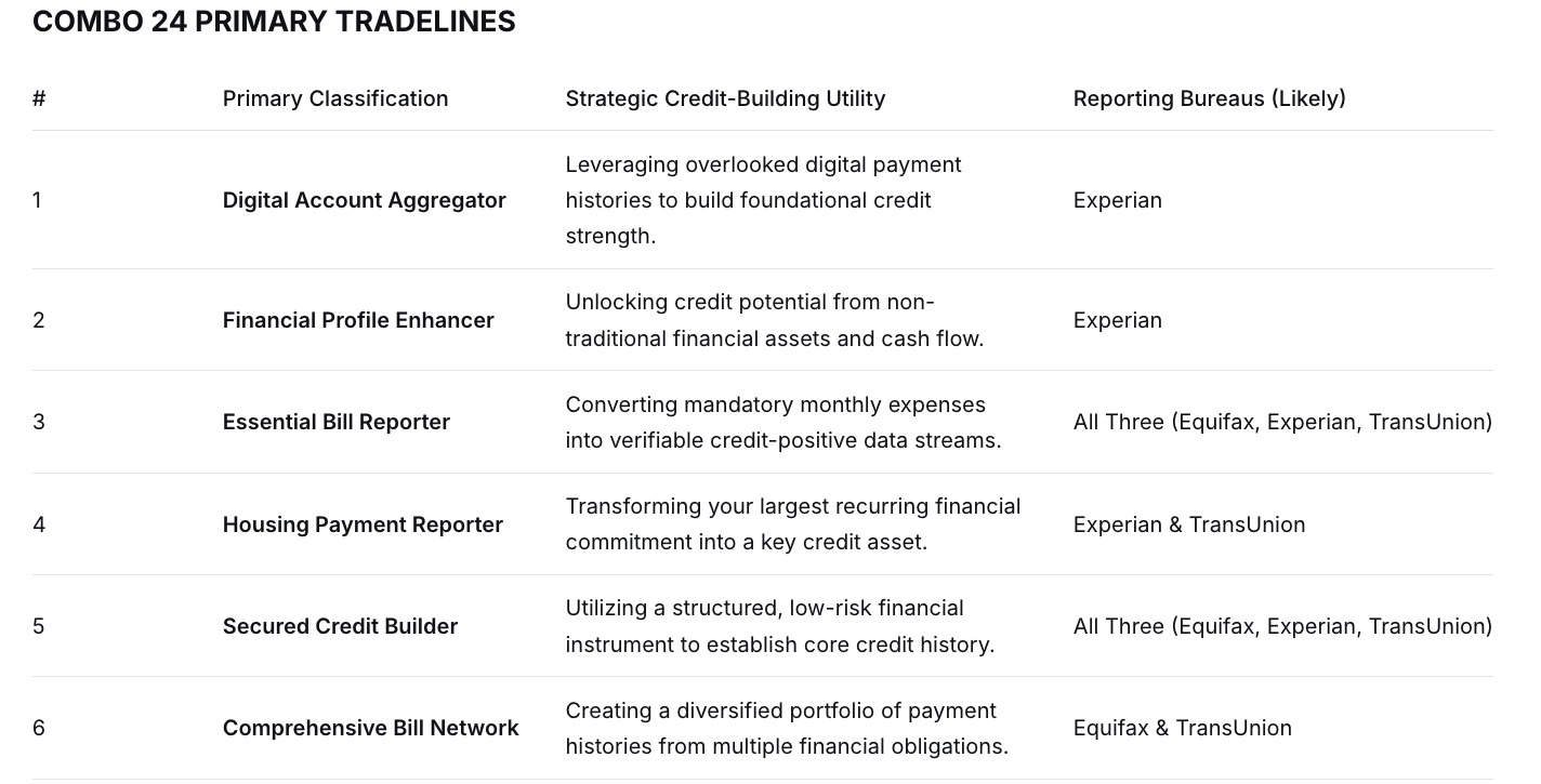 You deserve credit that works as hard as you do. You deserve accounts that lenders respect and results that last. This package delivers exactly that—13 hand-selected, instant-approval, score-boosting primary tradelines that transform your credit profile and open doors to the financial future you've been waiting for.