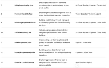 Core Benefit: Captures and optimizes a broad range of essential monthly payment streams to build a diversified and resilient credit profile.